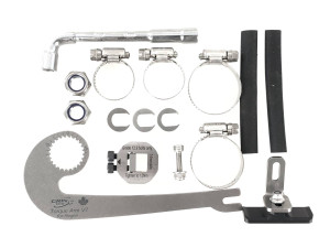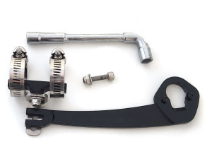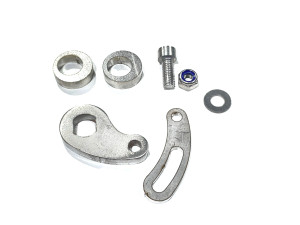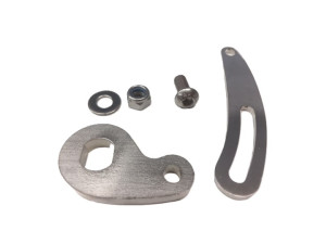 Eine torque arm wird für Nabenmotorinstallationen mit mehr als 500 Watt (36 V mit 20-A- oder 25-A-Controller) oder für jede Installation an Aluminiumgabeln empfohlen. Es gleitet über die nicht verdrahtete Seite der Motorachse und greift in die 10-mm-Achsflächen ein, um zu verhindern, dass die Achse in den Ausfallenden herausdreht.