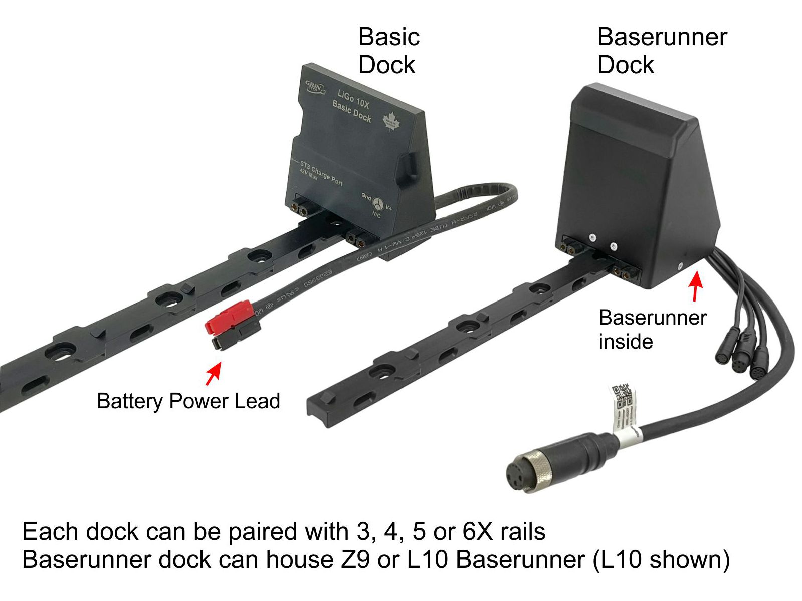 Offre due opzioni di aggancio per lo zaino: un dock base per controller esterni o un dock in lamiera piegata che consente l'integrazione di un Baserunner.