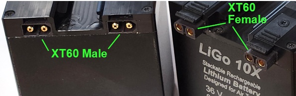 - QUATTRO connettori XT60 integrati (2M + 2F) per modulo