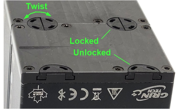 Quando due batterie LiGo 10X sono collegate tra loro, vengono fissate insieme da quattro fermi meccanici e non solo dai connettori XT60 accoppiati. Sulla parte superiore del pacco, due fermi a scatto sopra i connettori XT60 si agganciano automaticamente e devono essere premuti per essere rilasciati. Sul fondo della batteria si trovano invece due fermi a rotazione. Questi rimangono a filo con la superficie quando sono scollegati, ma bloccano completamente le basi quando vengono ruotati di 90 gradi. Guarda il nostro breve video su Instagram per vedere come funziona. |