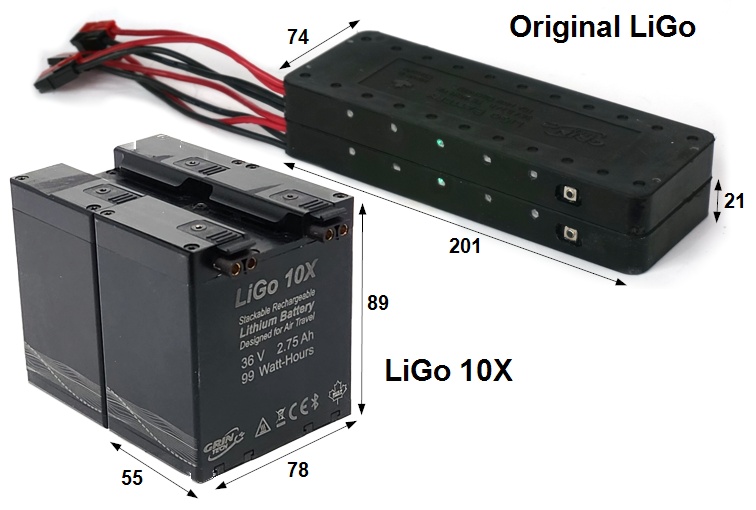 La famiglia di batterie modulari LiGo di Grin è nata in risposta alle restrizioni di trasporto imposte ai grandi pacchi batteria al litio per e-bike. Le batterie correttamente certificate con potenza inferiore a 100 wattora possono essere spedite con molte meno restrizioni rispetto ai pacchi batteria di grandi dimensioni e sono persino ammesse a bordo di aerei passeggeri insieme al bagaglio a mano. Il concetto di batteria LiGo prevede la creazione di piccoli moduli autonomi da 99 wattora che possono essere facilmente impilati in parallelo per formare un'unica batteria di grandi dimensioni, ma smontati per la spedizione. I nostri moduli LiGo e LiGo+ originali (2016-2022) avevano tutte le celle disposte in file 10x1 e si basavano su due coppie di cavi con connettori Anderson Powerole per il collegamento. I dispositivi LiGo 10X sostitutivi presentano le celle in un layout 3x4x3 più compatto con un'interfaccia meccanica ed elettrica a clip. |