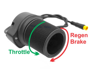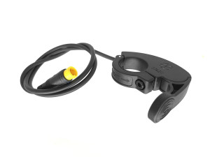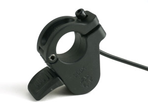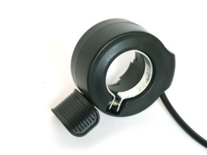 The throttles below are all linear Hall effect devices and will output a 1-4V signal when powered by a 5V supply. They fit standard 7/8" diameter bicycle handlebars. Typically a thumb throttle is used when the bike is equipped with twist shifters, while a twist grip or split grip throttle is used with lever shifters.